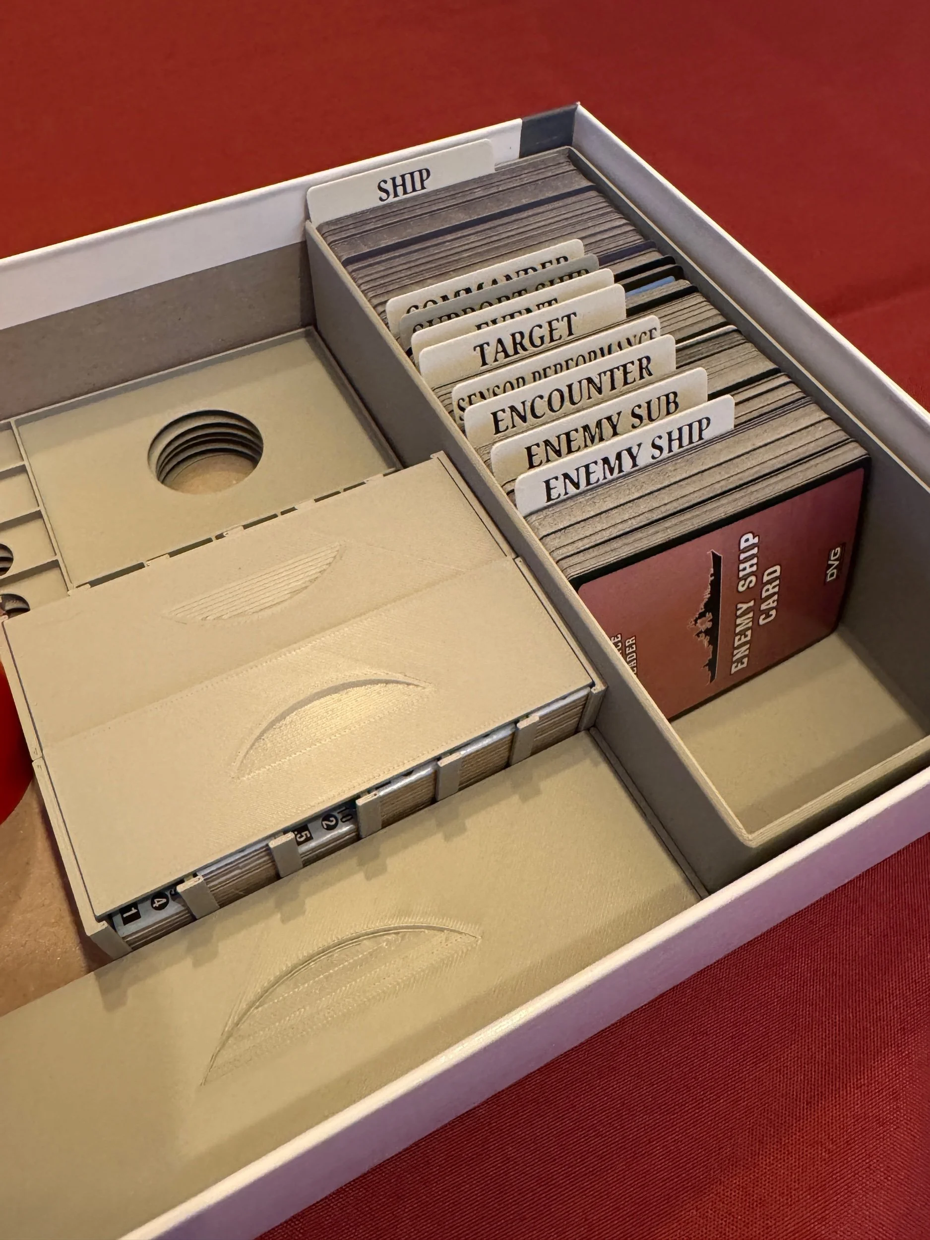 1 card holder with separators (Event, Enemy Ship, Target, Ship, Sensor Performance, Enemy Sub, Encounter, Commander, Support Ship)