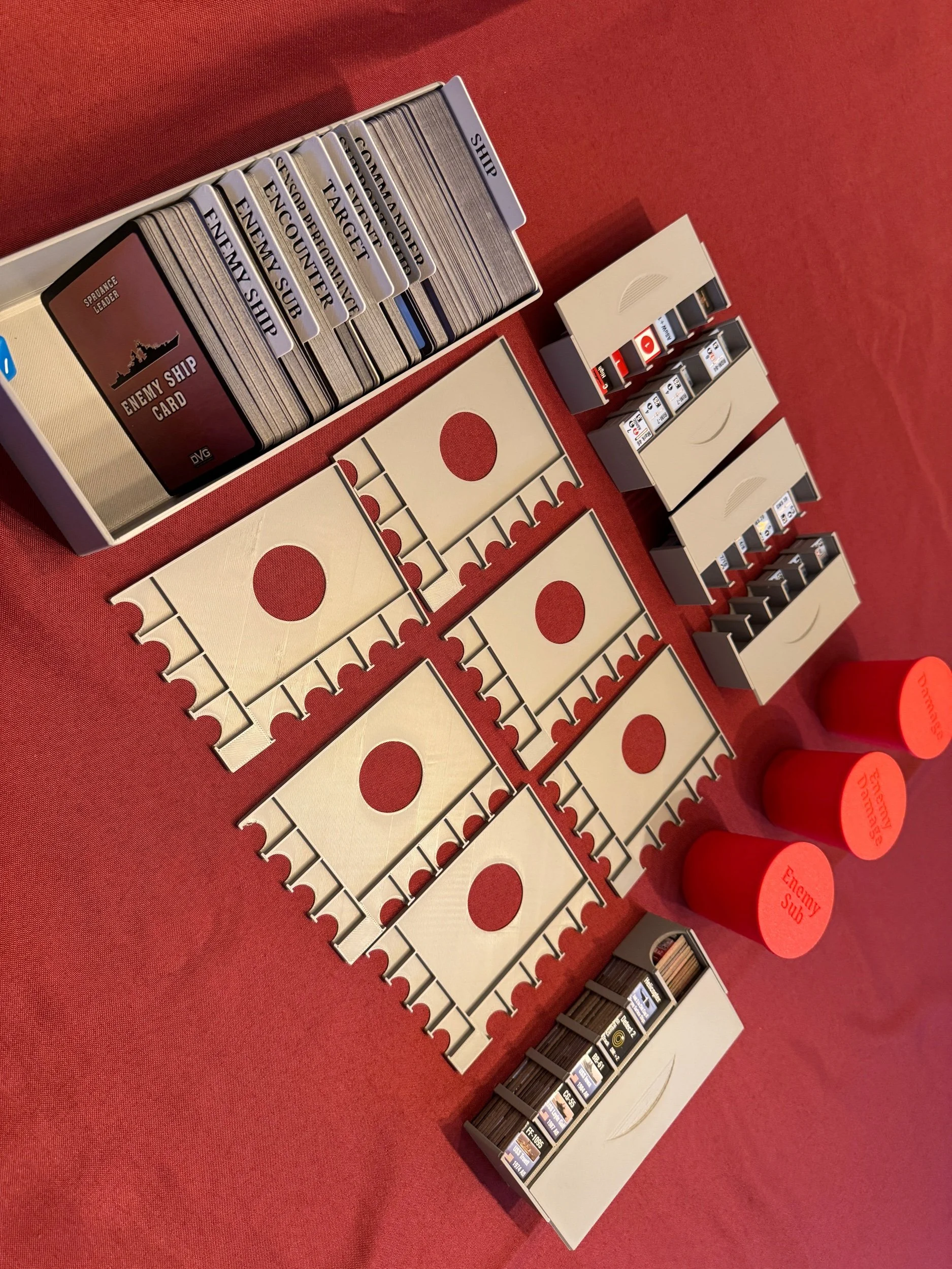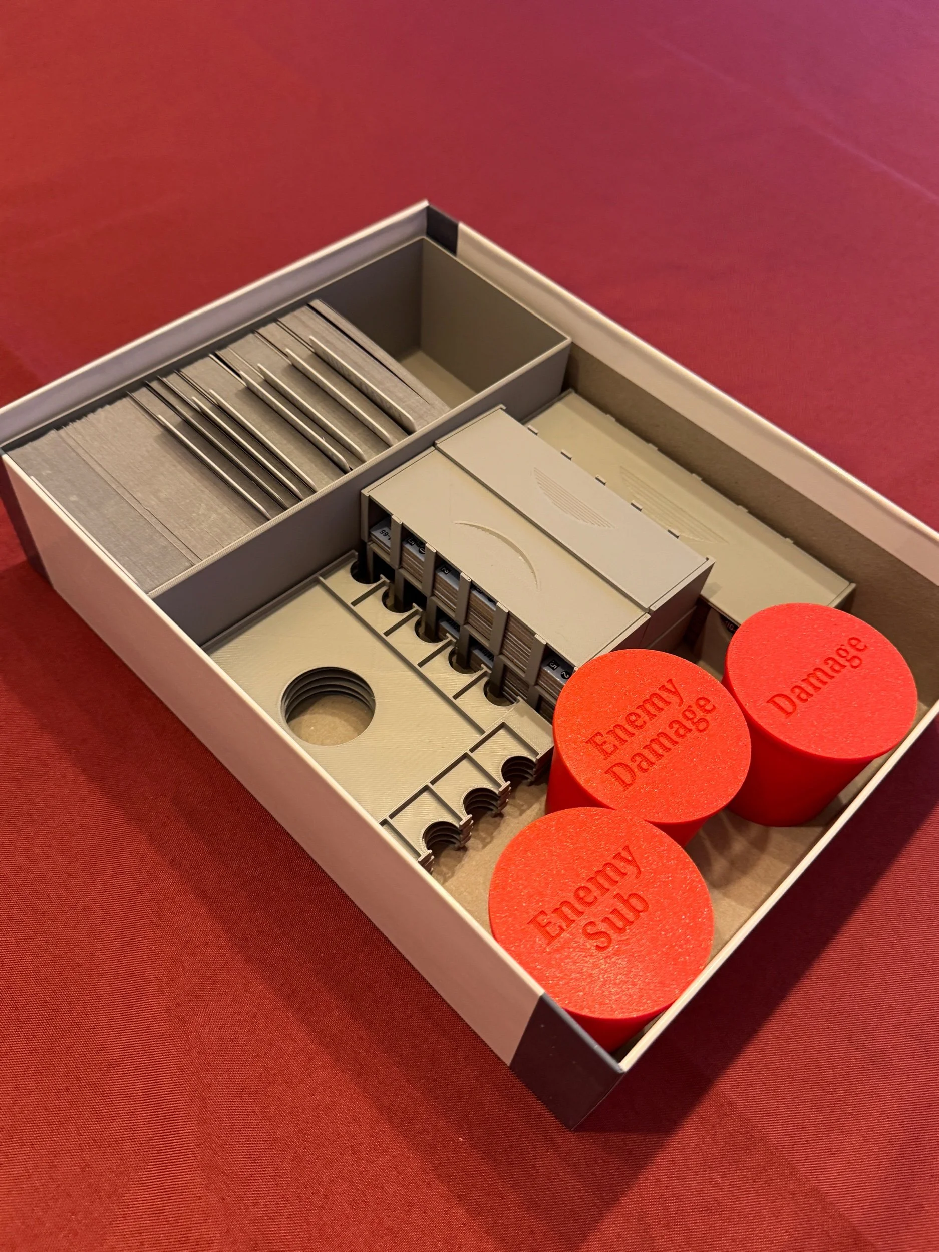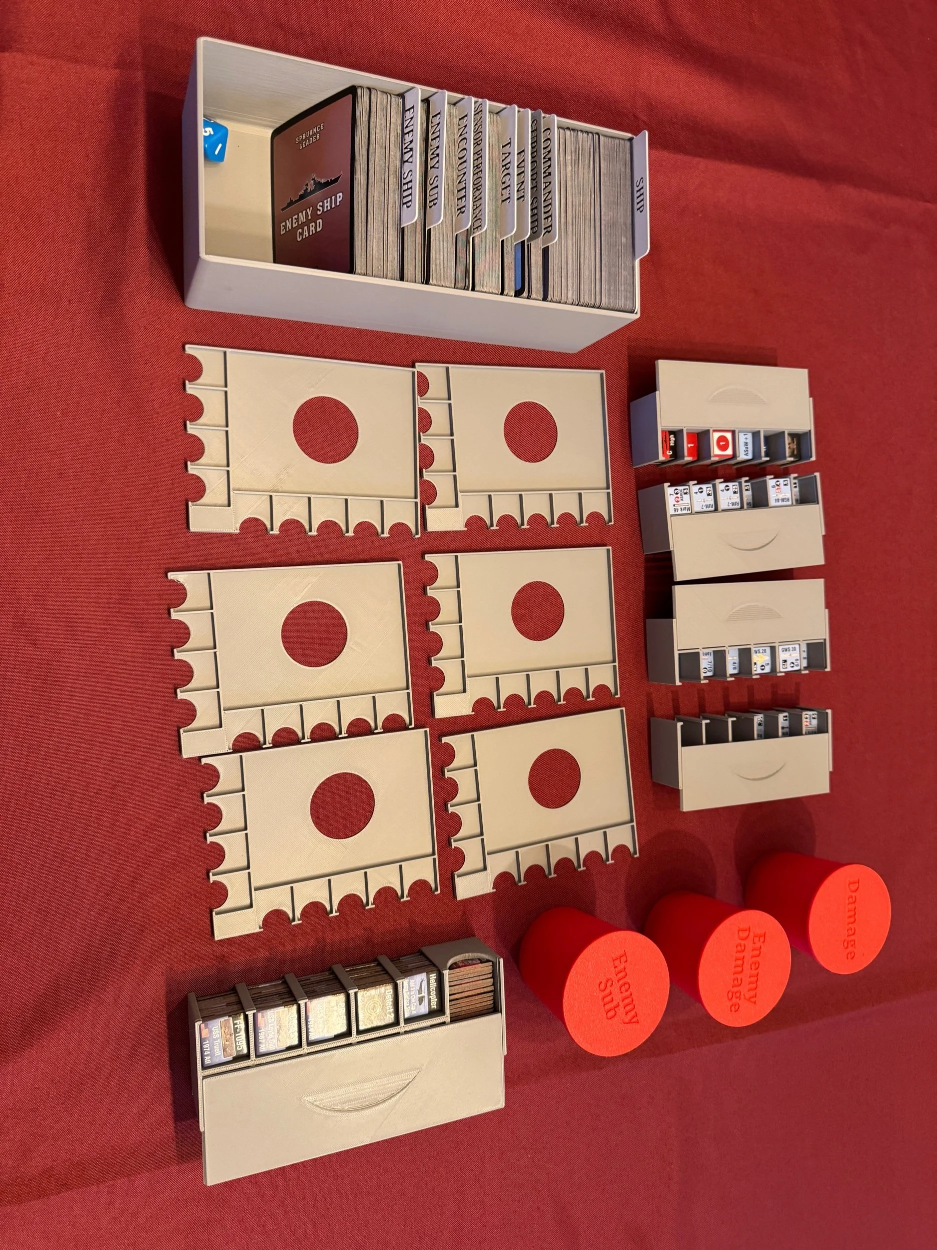 3 red draw cups with lids for Damage, Enemy Damage, Enemy Subs